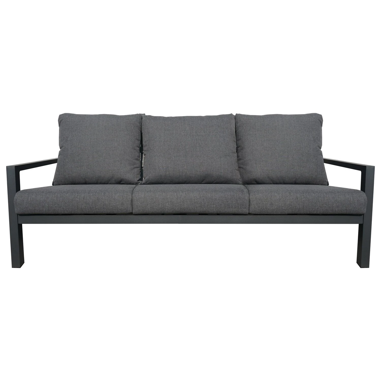 Van de serie CANNES is er ook deze prachtige 3-zitsbank! De kleur van de bank is antraciet en het materiaal is aluminium. De 3-zitsbank van CANNES is uitstekend te combineren met de fauteuil, hocker en bijzettafel van deze serie.