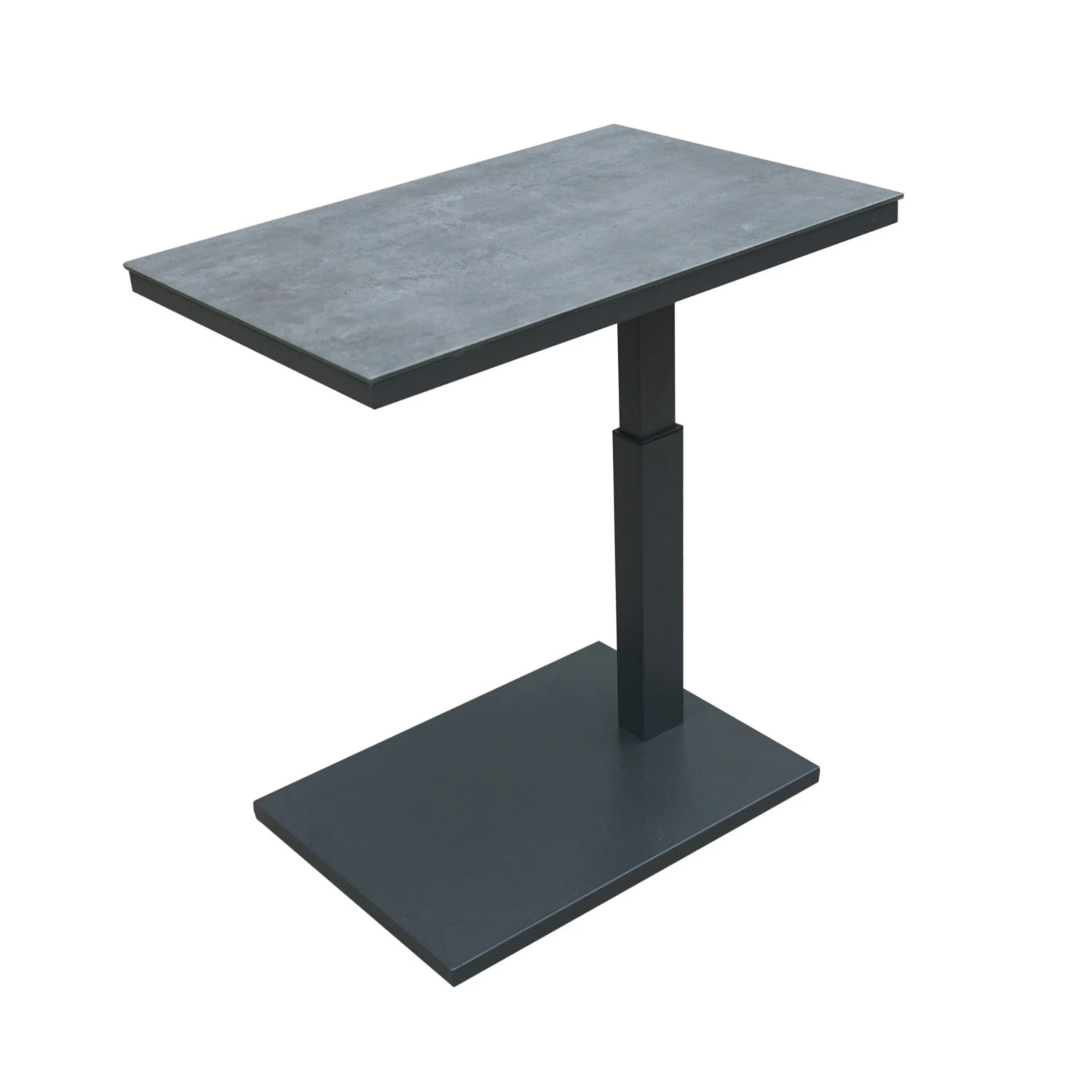 Een bijzettafeltje is altijd handig om bijvoorbeeld je drankje of boek op te bewaren. De SOL bijzettafel is voorzien van een keramisch tafelblad welke gemakkelijk in hoogte te verstellen is. Het frame is gemaakt van aluminium. De tafel heeft een afmeting van 60 x 740 x 47-67 cm.