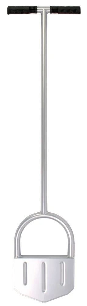 Graskantsteker met lange steel, zorgt voor een ergonomische houding. Het instapje in het midden zorgt ervoor dat de graskantsteker recht in de grond gestoken kan worden.