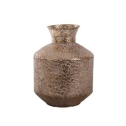Mooie woonaccessoires zijn onmisbaar in huis! Met deze Metalen vaas D 26 x H 35 cm Witgoud wordt het gegarandeerd gezellig en sfeervol in elk interieur. Deze vaas is perfect als woondecoratie in elke ruimte in huis. Maak het dus gezellig in de woonkamer of breng meer sfeer in de hal. Door bijvoorbeeld wat decoratieve takken of pluimen in de vaas te zetten, is het plaatje helemaal compleet. Dit is de perfecte toevoeging in elk huis. De vaas is in diverse afmetingen verkrijgbaar, dus maak zelf de mooiste combinaties!